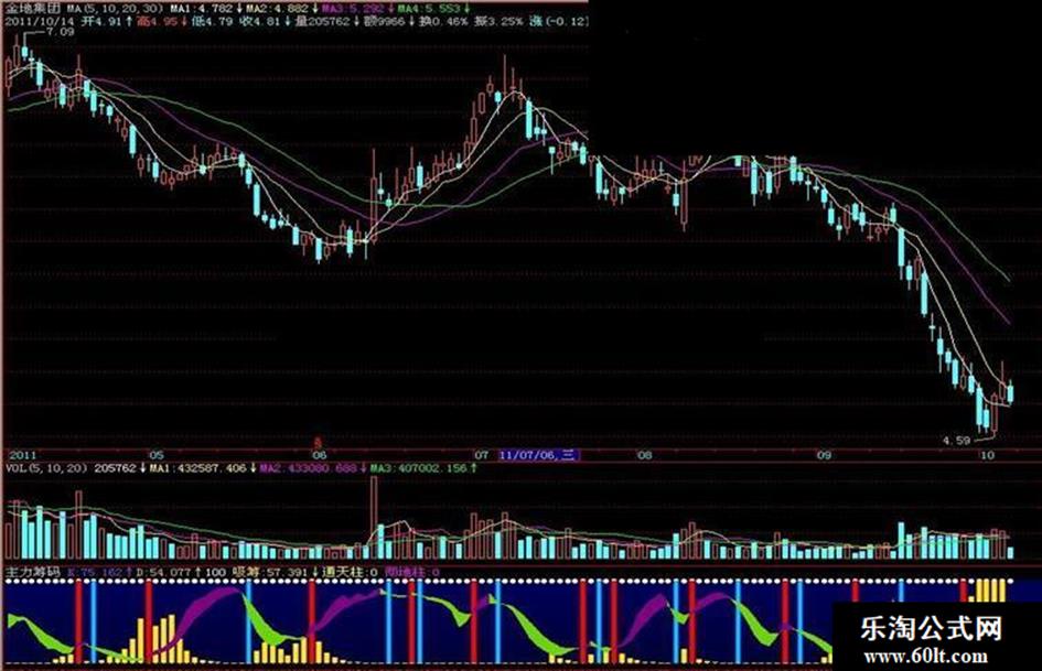 画渐变背景色((收盘价 > 0),RGB颜色值(0,0,88),RGB颜色值(0,0,55),1);