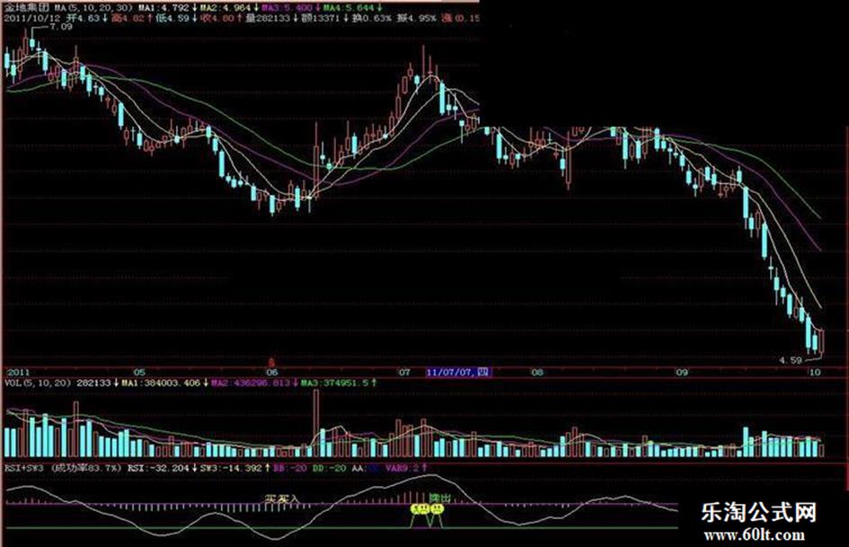 {技术指标公式:RSI+SW3 (成功率83.7%) 缺省周期:日线}