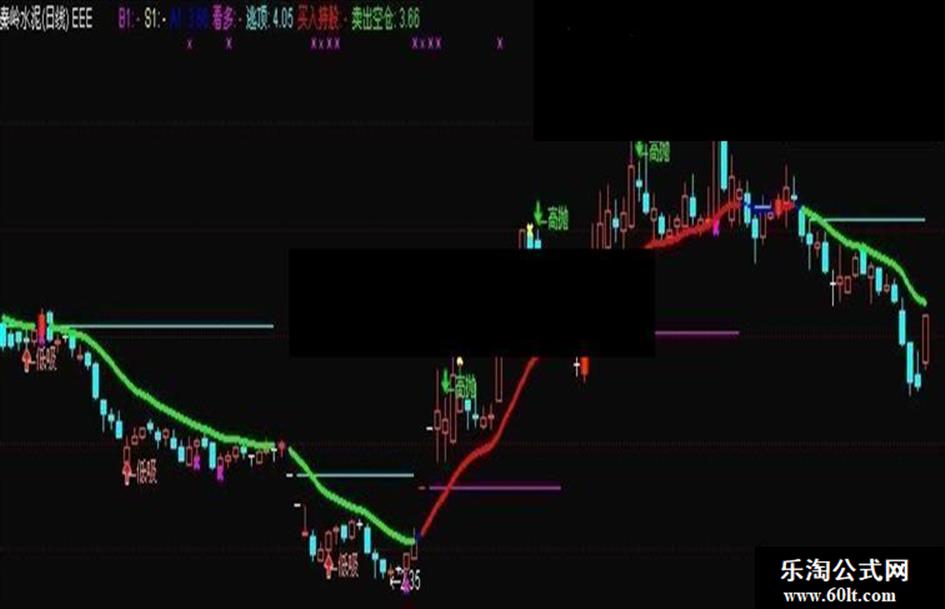 看多:IF(A1X>=0 AND BARSLAST(CROSS(A1X,0))>0,REF((C+O)/2,BARSLAST(CROSS(A1X,0))),DRAWNULL),COLORMAGENTA{,LINETHICK2};
