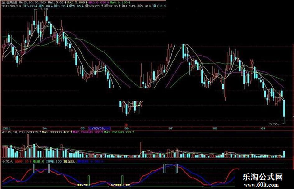 看底:IF((趋势-VAR6<(-65)),1,6),COLOR00FF00;