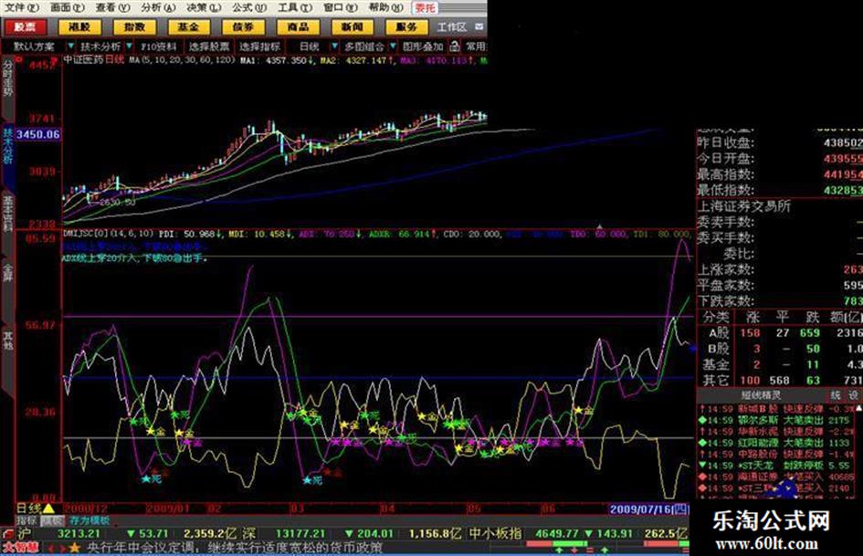 DRAWTEXT(CROSS( ADX,ADXP), ADXP,'★金'), COLOR000999 ;