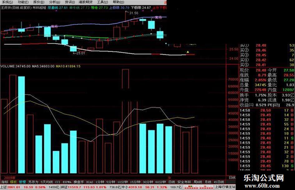 下极限:=(中轨-2*STD(C,20)),COLORWHITE,LINETHICK2;