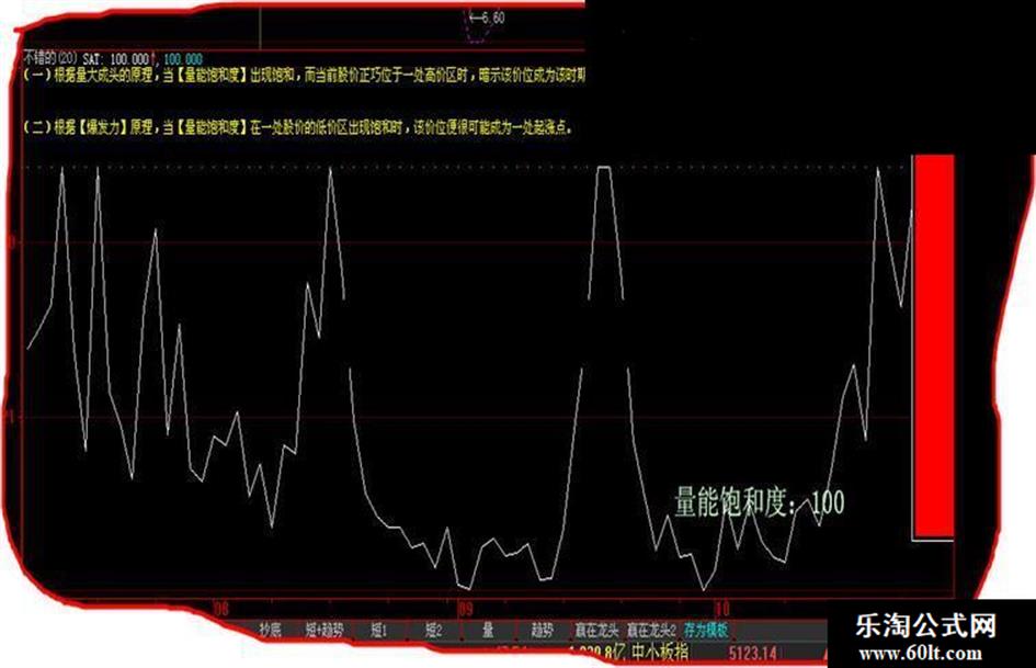 DRAWTEXTREL(0,0,'(一)根据量大成头的原理,当【量能饱和度】出现饱和,而当前股价正巧位于一处高价区时,暗示该价位成为该时期峰顶的机率将会大幅增加。'),COLORYELLOW;