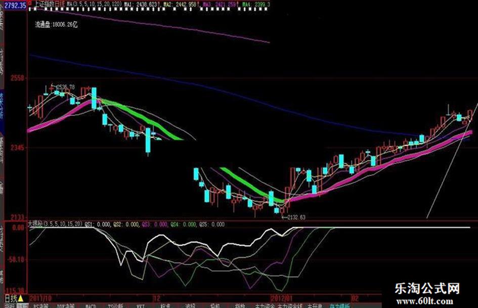 ㊣☆指标不是万能的,没有指标是万万不能的。再来一个指数的指标,就叫大揭秘吧;用法:看qs1-5线条发散的走向与趋势,向上,升势,qs1=0,关注,qs1=0,qs2=0,激进者跟进,随后,一旦qs<0,线条向下发散,出局。并与网上流行的奇特线指标对比,你会发现信号要提前的多。{来源于: 公式在线网}