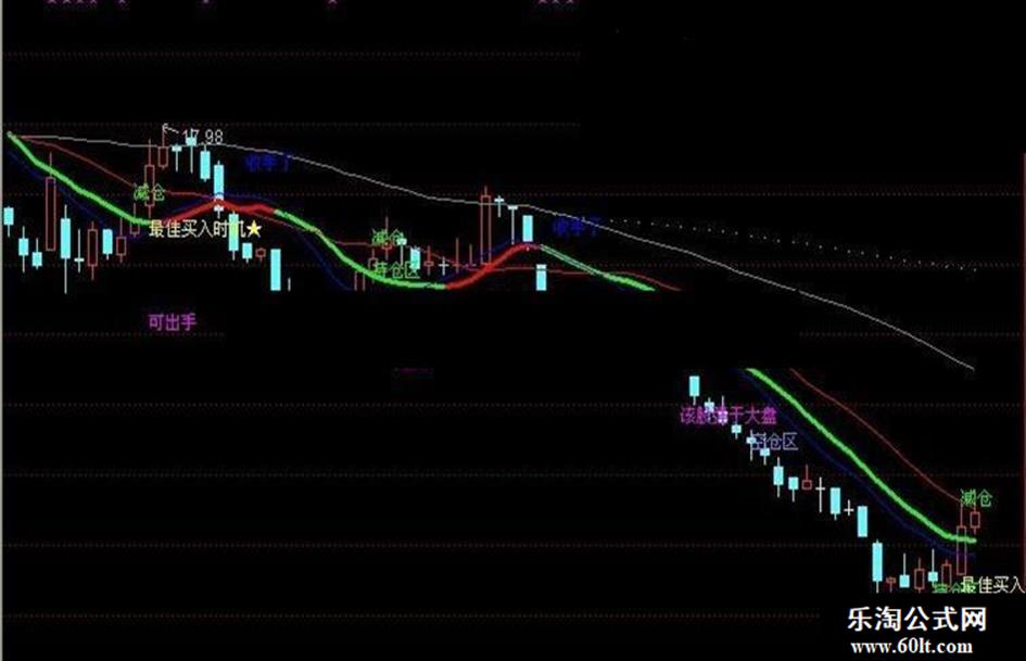 涨:IF(短趋势线>REF(短趋势线,1),短趋势线,DRAWNULL),COLORRED,LINETHICK3;