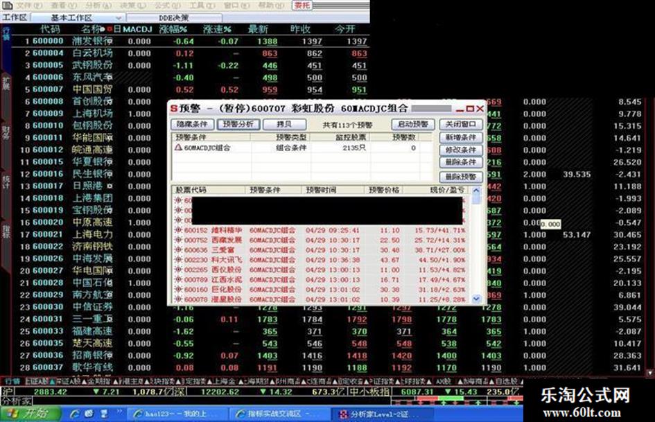 预警周期为日线,盘中预警,(全推送,5分钟数据完整).同时满足60分.30分.15分MACD金叉出信号;源码和效果如下图,如果你优化得更好,不仿大家一起交流: