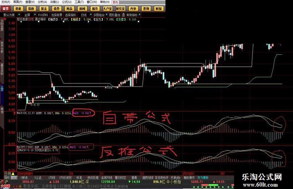 根据赵鑫鑫505反向推算KDJ公式的思路,结合论坛发布的反向推算macd飞狐公式,编制反向推算MACD大智慧新一代公式。可以准确预测DIF线拐头时的股价。同时可以自定义MACD数值,推算达到该数值时的股价,结合大智慧箱体主图判断顶底;方便大家捕捉买卖点。参数为-1000时,即时的收盘价,为-999时即可推算出DIF线发生转折时的股价。也可以自行输入MACD值,系统自带指标会提示MACD值的,输入后即可获得该MACD值对应的股价,详细可参考TM3图。之所以设置参数-1000和-999是因为MACD值在正常情况下是不可能达到这个值的,具体思路和推演过程就不具体表述了