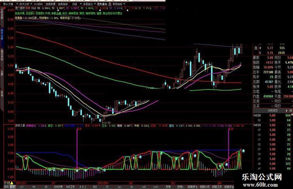 波峰波谷:SMA(拉升力A,3,1),COLORFF00FF;