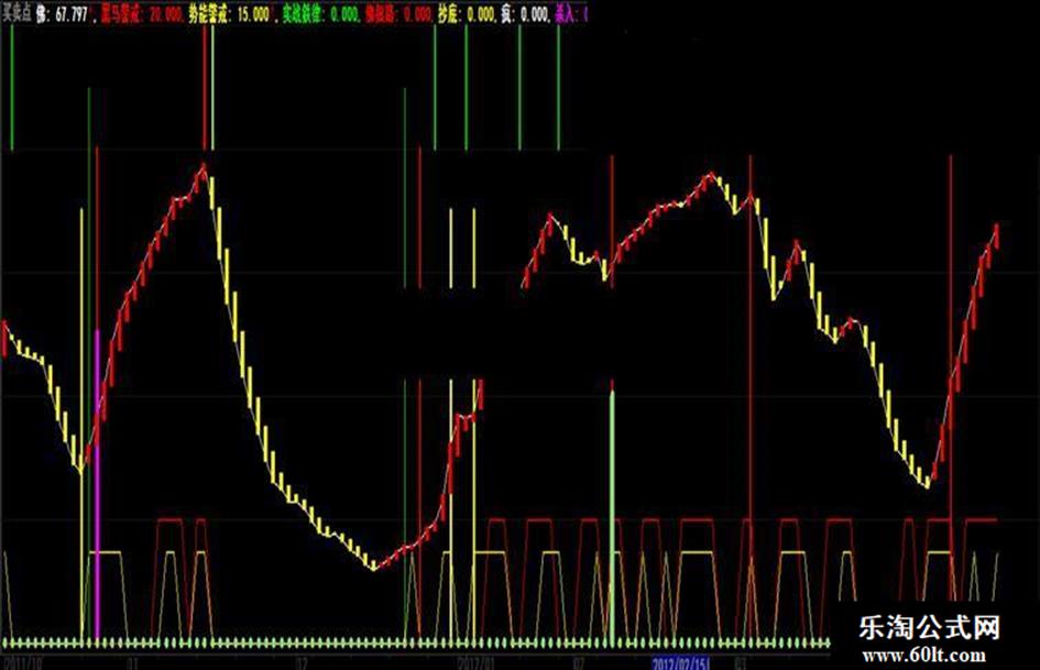 疯:IF(CROSS(主力线,散户线) AND 佛追涨>0 AND (主力线<87) AND (主力线>55),60,0),STICK,COLORWHITE,LINETHICK4;