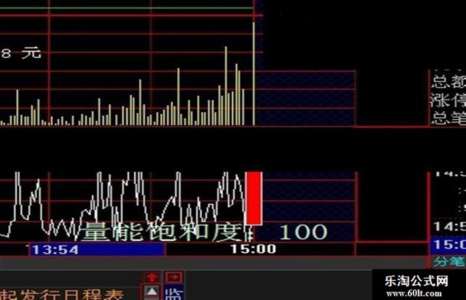 IF BARSTATUS=2 and (SAT) THEN BEGIN DRAWTEXTREL(700,800,'量能饱和度:'+NUMTOSTRN(SAT,0)),LINETHICK6,COLORccffcc;end;