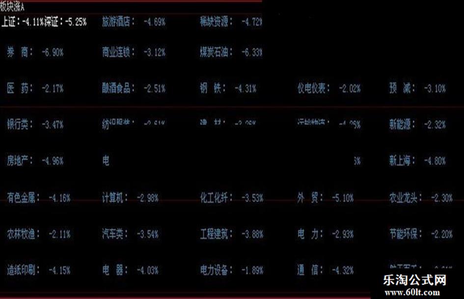 IF STKINDI('991019','涨幅引用.A')*100<0 THEN BEGIN DRAWTEXTREL(x3,y2,'煤炭石油: ' +NUMTOSTRN(STKINDI('991019','涨幅引用.A')*100,2)+'%'),colorb48c33;end;