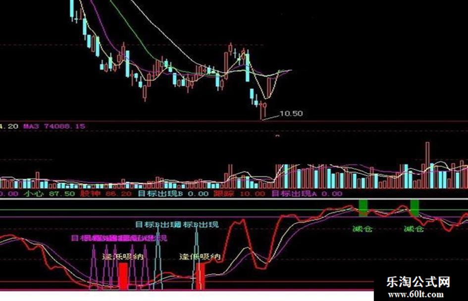 目标出现A:IF((COUNT((股神>REF(股神,1)),1)=1) AND (REF(股神,1)<REF(REF(股神,1),1)) AND (股神<跟踪),50,0),ColorF00FF0;