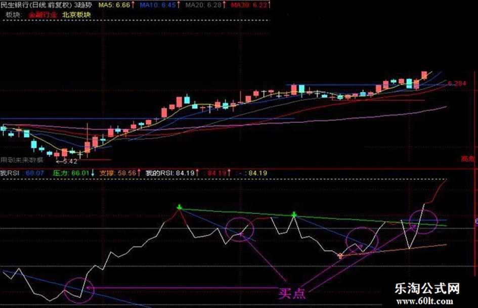 具体看RSI突破压力线就是买点,特别在一波下跌之后出现在低位突破的效果明显,指标有未来函数因为是画线功能,不喜欢的请绕道,如有雷同纯数巧合,不当之处请前辈们斧正优化