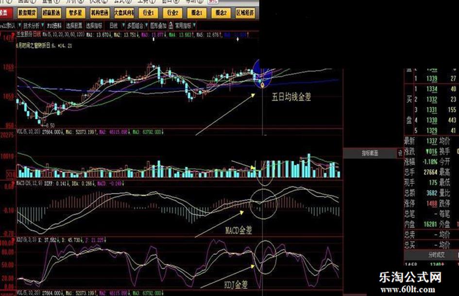 5日均线金叉10日均线、5日均量金叉10日均量 、MACD金叉、KDJ金叉形成四金同日共振