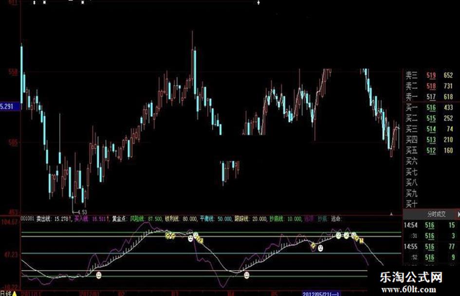 DRAWICON(CROSS(买入线,卖出线)AND(卖出线>50),卖出线,3);