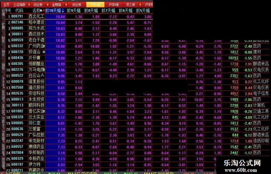 里面有指标公式的模版, 查看十天前涨幅的数据 件指标解压后把模版放在DZH2/userdata/self文件夹,可以查看十天前所有股票的涨幅历史,很方便!很实用!