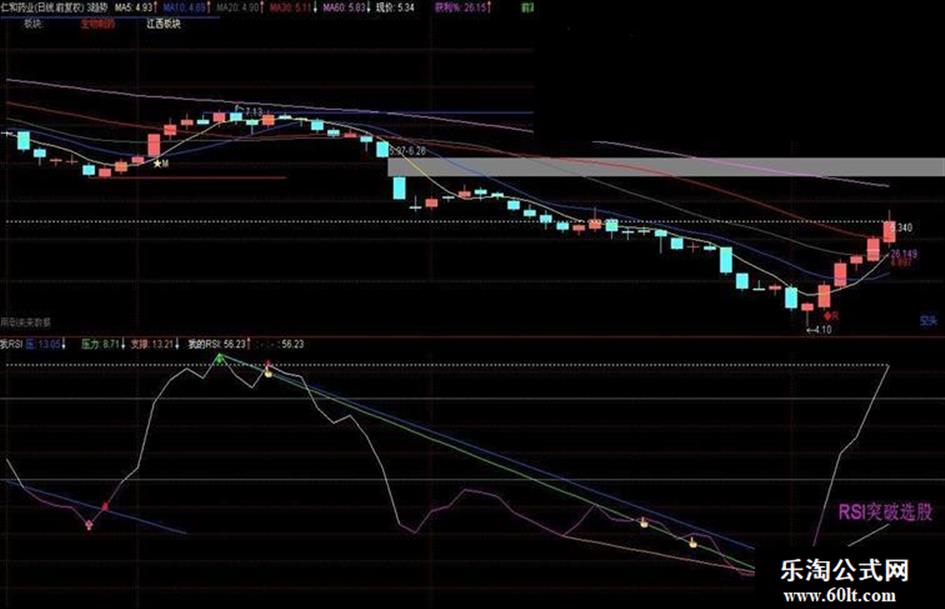 通达信经典指标RSI突破选股公式