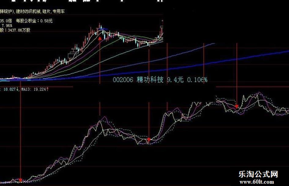 2、60分钟TWXA的陶氏线上穿KD线后,升势会快速展开,MA13线向上的角度越陡,股价上涨的力度就越强。当60分钟TWXA的陶氏线下穿上位线,而30分钟和15分钟TWXA的陶氏线也已经下穿上位线或KD线,这时应该果断卖出。