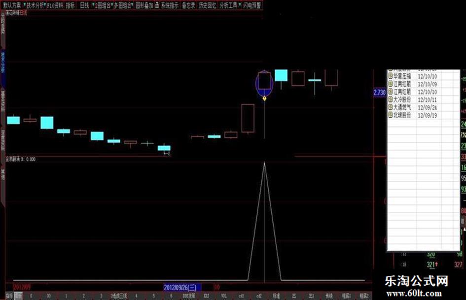 5、运用:打开任意一个K线图——点指标-----就可以看到你刚才导入的公式名称-----双击它-----你刚才选择的副图上就会出现这个指标了。
