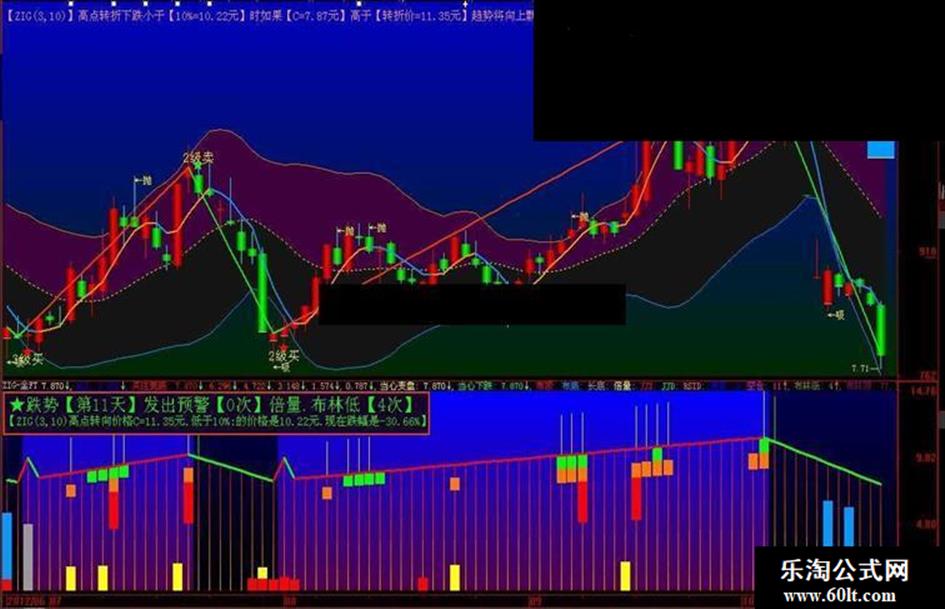 总之我们用ZIG(3,10)不管涨跌只要达到10%以上就不会再飘逸了.咱们进一层说在转折以后涨跌幅度没超过10%以前都有可能产生飘逸---------—就是说ZIG(3,10)有涨跌幅10%以内的涨跌趋势的不确定性--------------------.正因为这个道理咱们在主图.幅图.用文字.用图形.都编辑了补助信号.你不可以【视而不见】.
