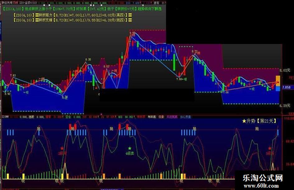 这里边我最看好的是以下两句.它的线是有趋势性的股票涨跌有他参考很有价值.就是图上的分界线他的变色.和K线在他的上下都很说明问题.不信你就好好琢磨琢磨.ZIG的作用真的很强大.就看你会不会用.能不能用好它为你服务了.
