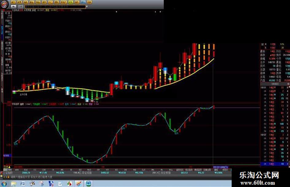 拉升:IF(上涨趋势>REF(上涨趋势,10),上涨趋势,上涨趋势),ColorFFDE00,LINETHICK2;