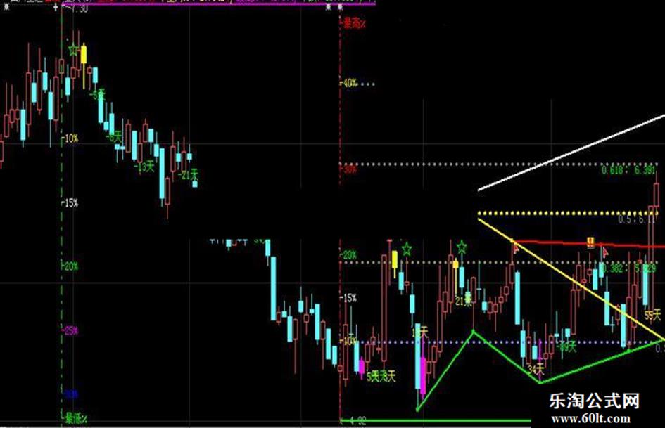 DRAWTEXT(下跌=0 AND 最低%<-60,HH*0.4,'-60%'),COLORFFFFFF;