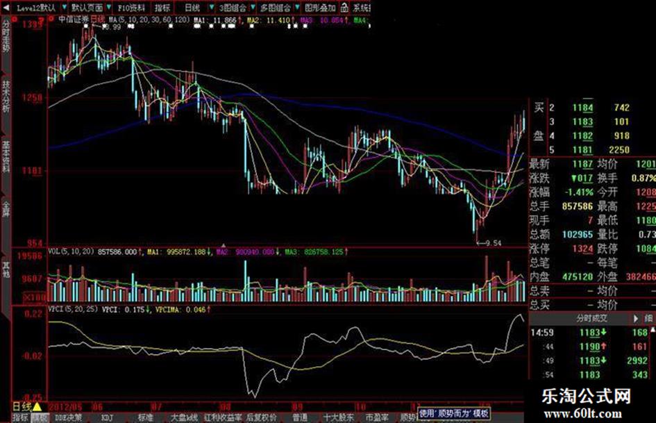 1.价格上升,VPCI上升,成交量价格确认,牛市买入信号;