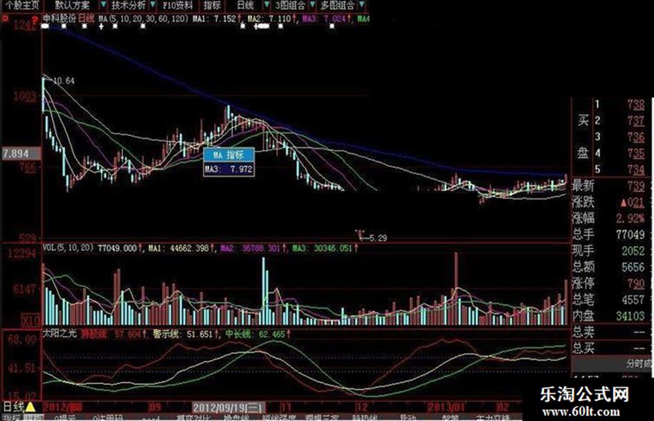 该指标是本坛老师”太阳须“的一个通达信副图指标,我把它改编为大智慧副图指标,并作简易处理。 因为太阳须在发帖时未曾加密,所以我也秉承他共享的意愿,不作加密处理。 为表对太阳须劳动成果的感谢,我特意把指标命名为:太阳之光。
