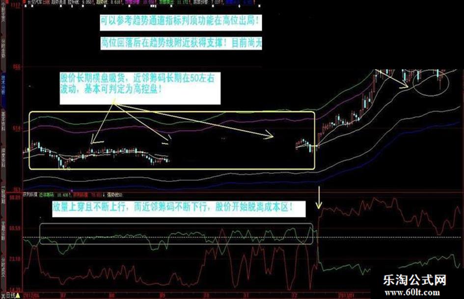 本指标由近邻筹码(即股价上下15%空间内的筹码比例)和获利纵横组成,是监控高控盘股票启动和高位出货的利器。