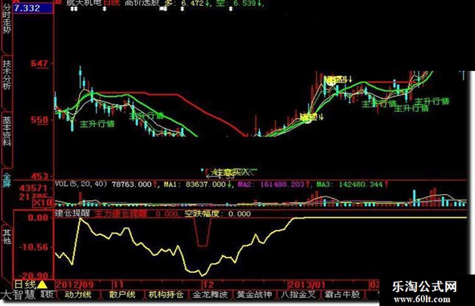 发一个副图 提示主力建仓的指标 黄线掉头向下为卖出信号
