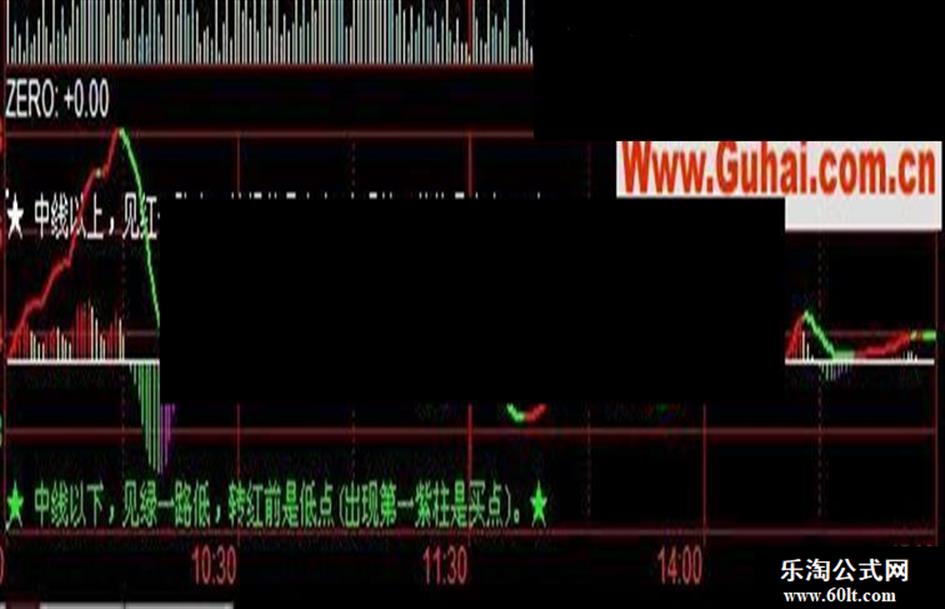 DRAWTEXTABS(20,150,'★ 中线以下,见绿一路低,转红前是低点(出现第一紫柱是买点)。★ '),COLORGREEN,LINETHICK1;