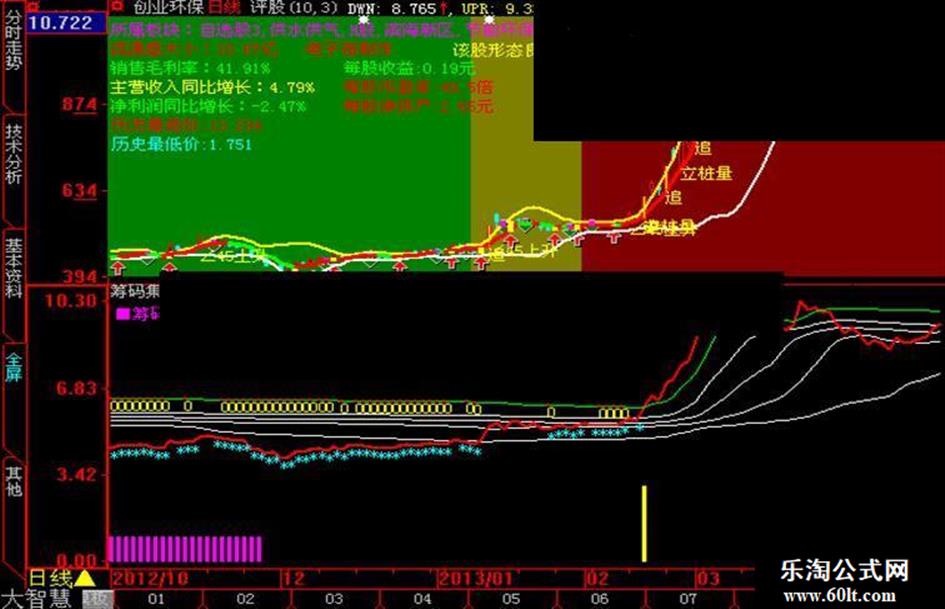 DRAWTEXT( vol/CAPITAL<0.007,筹,'o' ),COLORYELLOW;