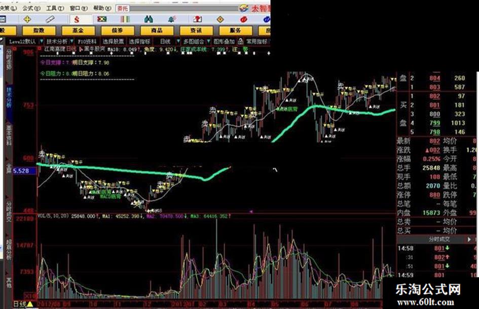 【分离线】:if(ma(C,18)<【持股线】,(ma(C,18)-(【持股线】-ma(C,18))),【持股线】),COLORCYAN,linethick1;}