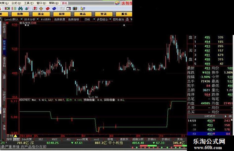 预测量:=IF(DYNAINFO(7)=CLOSE AND DYNAINFO(10)=AMOUNT,MAX(VOL,DYNAINFO(17)*REF(MA(VOL,5),1)),0);