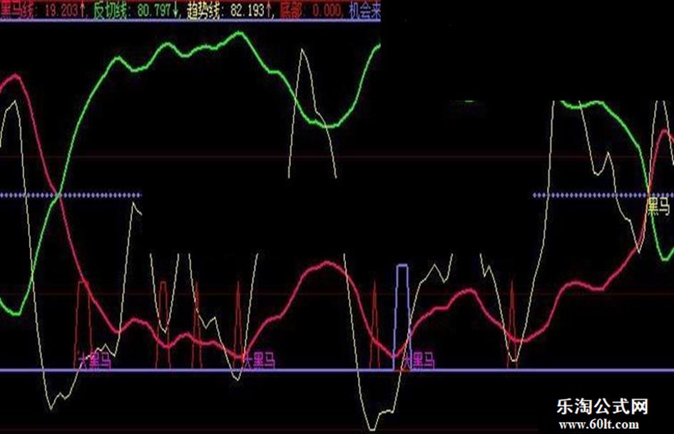 大势已去:IF(CROSS(黑码线,A1) AND 黑码线>70 AND 趋势线>80,90,100),LINETHICK2,COLORE66878;