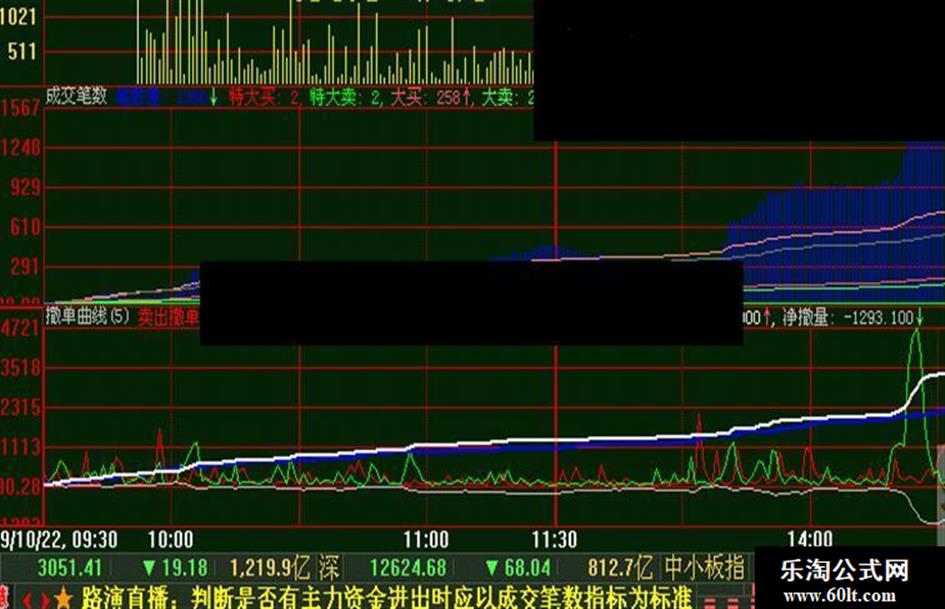 卖出撤单:WIDTHDRAWORDER(2),colorred,linethick1; 买进撤单:WIDTHDRAWORDER(1),colorgreen,linethick1; 撤卖单累计:sum(卖出撤单,0)/20,colorblue,linethick2; 撤买单累计:sum(买进撤单,0)/20,colorwhite,linethick2; 净撤量:撤卖单累计-撤买单累计;
