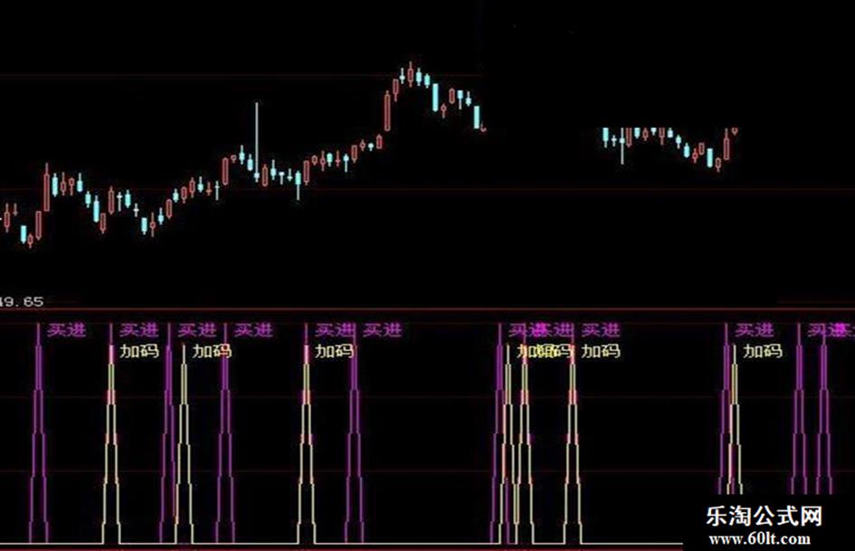 加码:if(CROSS(CLOSE,加码价) AND 加码价>REF(加码价,1),68,0),COLORYELLOW ;
