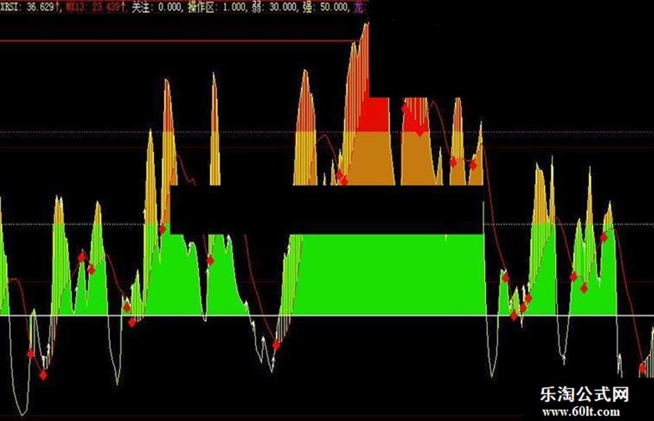 关注:CROSS(XRSI,MA(XRSI,2)) AND BETWEEN(XRSI,20,60),COLORFFFFFF,POINTDOT,LINETHICK0;