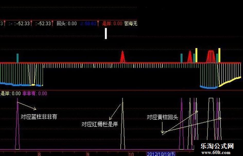 在原码中,黄柱代表回头;红栅栏代表是岸;蓝柱代表非非有;郑老师说红栅栏如火山要爆发了可关注,黄柱,蓝柱可抄底;明白这些,下面给出选股公式;