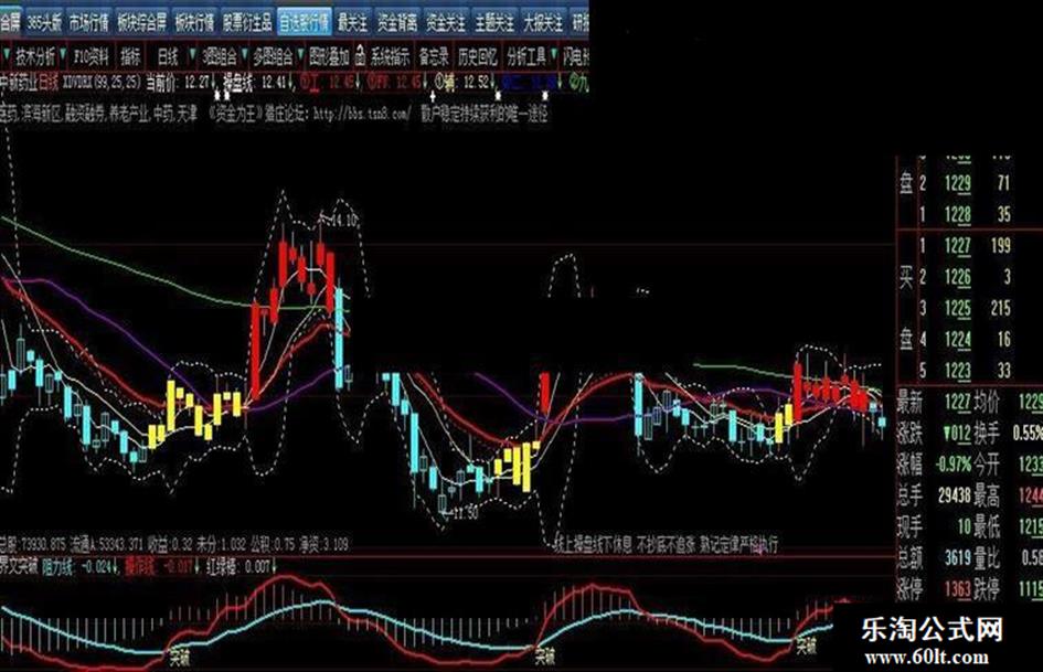 出现黄K线且突破①号工作红线的时候是买入信号,跌破红线的时候卖出信号。“红线上操作,红线下休息!”