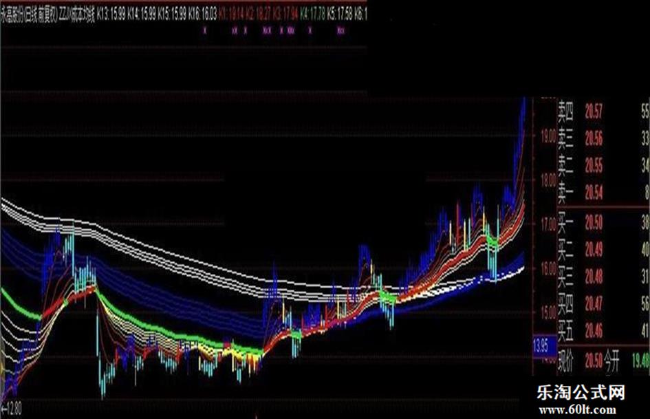 这是我最喜欢的一个看K线趋势的公式,类似系统带的均线,参数我在原版公式上做过修改,为了适应熊市+牛市。感觉更好灵敏些。原版参数天数太大。白色或蓝色渐渐拟合走平上翘是关键,蓝色可以看成是60日均线。蓝色线渐渐走平并渐渐融合成一根线时代表上涨看好。白色线蓝色线都渐渐走平上翘的票可谓强势票。具体各位喜欢的去琢磨吧。白色线可看成250日线。建议一次看的K线多显示些,均线的失真才会小,再缩小K线局部看,公式只计算软件读出来的k线。这是通达信软件的特色。最后祝各位好运。新手不可盲目亲信各种公式里的买卖点。牛市你也许运气好。熊市那些买卖点可以让你血本无归