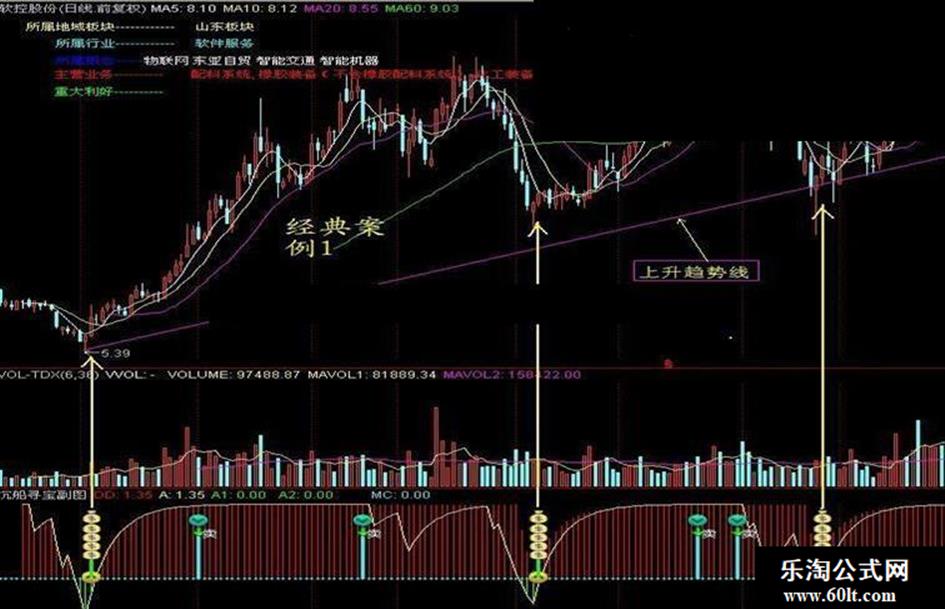 沉船寻宝副图说明:无未来函数,有明显的阶段底部提示。通达信、大智慧、同花顺软件可通用。操作简单,“宝物”出现买入,“卖”信号出现卖出。指标点评:各种指标就像成品衣服一样,能穿上合身的很少,我说它很“精准、稳赚…”,你相信吗?再说,流行的指标成千上万,每天都循环滚动,这个指标也是其他老师发过后,经个性化处理的。提醒新股民朋友,不要花时间和精力迷恋任何指标,赚大钱的老师,都不是用指标赚的!春节将至,就用这个观赏指标祝福各位老师、各位同学:炒股快乐、马年大吉、马到成功、马上赚钱!!!