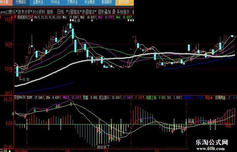 背离:=REF(CLOSE,A1+1)>CLOSE AND DIFF>REF(DIFF,A1+1) AND CROSS(DIFF,DEA);