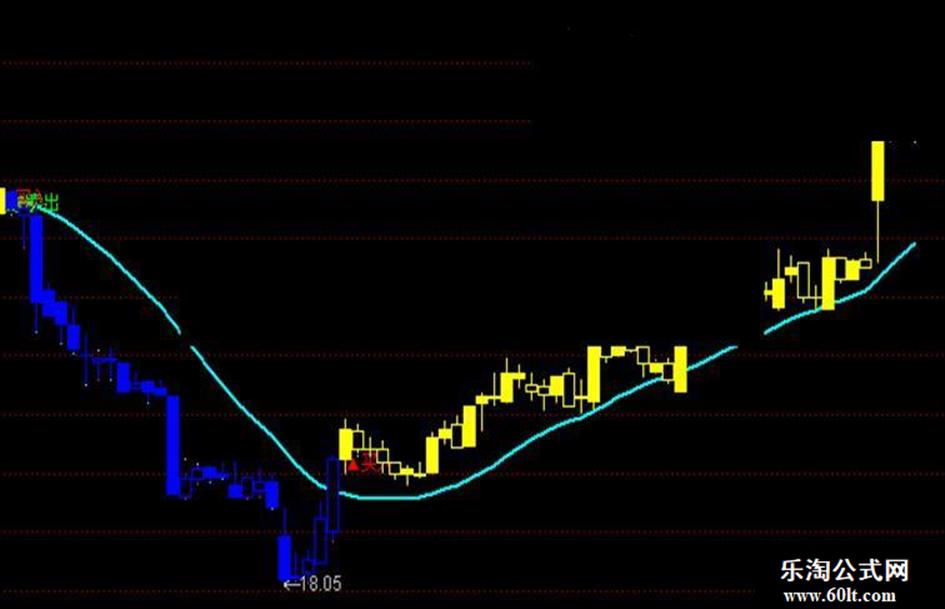 STICKLINE(股价线>趋势线 AND C>=O,H,L,0,0),COLORYELLOW;