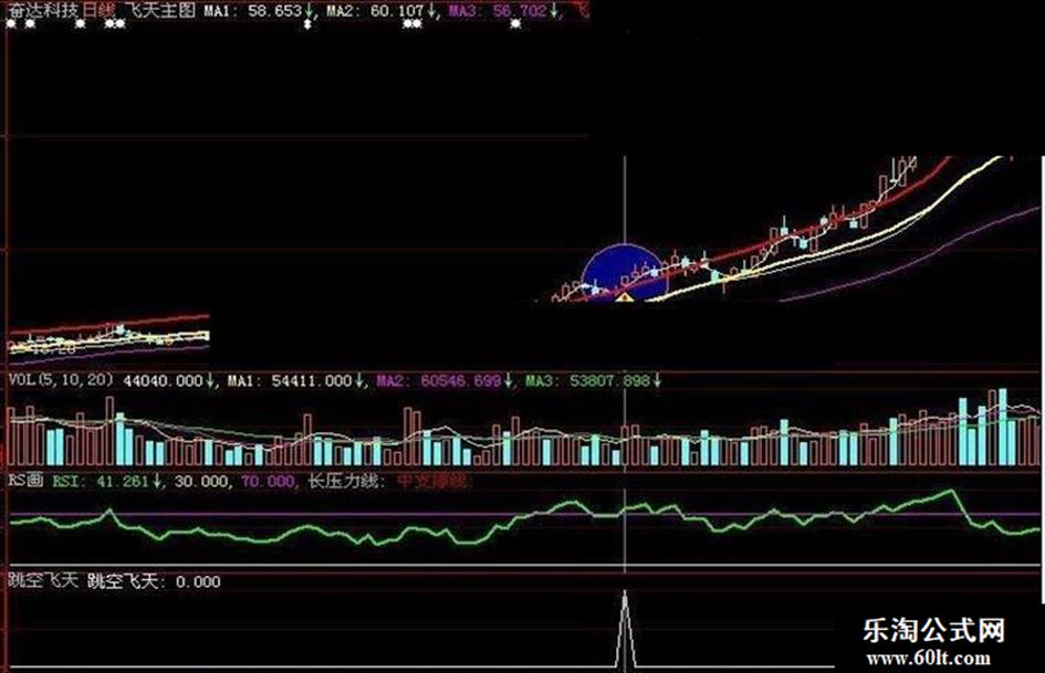 MA1:=MA(CLOSE,3); MA2:=MA(CLOSE,20); MA3:=MA(CLOSE,46); 飞天:=MA(CLOSE,25)+MA(CLOSE,25)*20/100; 跳空飞天:REF(CLOSE,1)<飞天 AND O>飞天 AND CROSS(MA1 ,飞天);