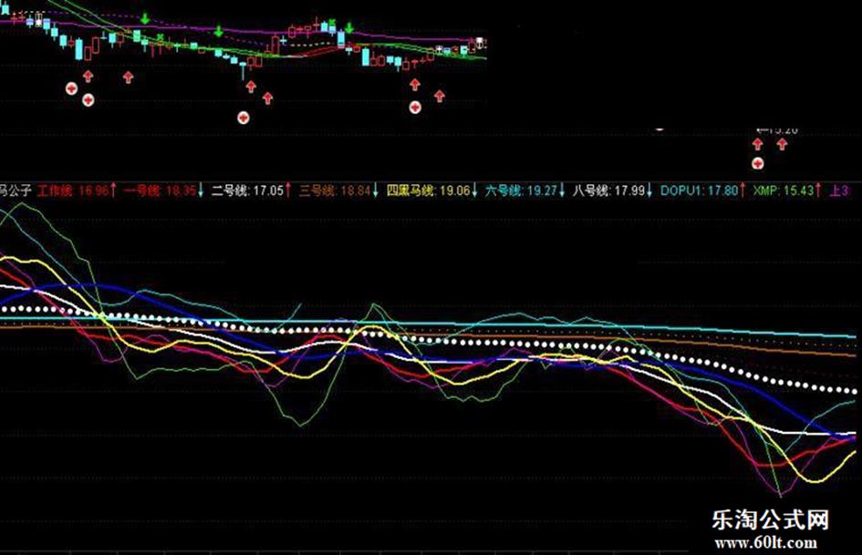 四黑码线:EMA(CLOSE,453),POINTDOT,LINETHICK2,COLOR00FFFF;