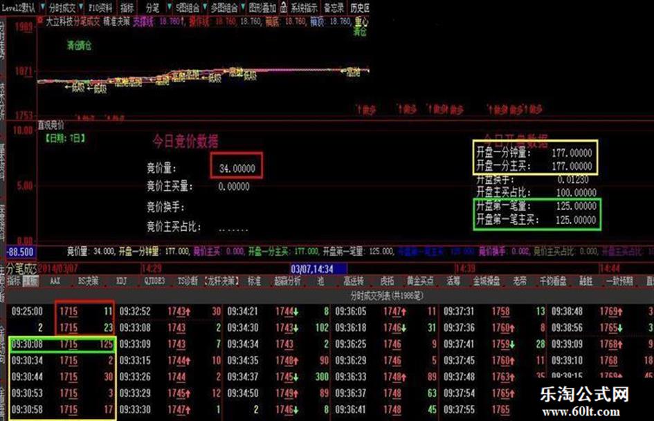 看到有些同学可能需要研究竞价及开盘一分钟的数据,但是可能由于某些原因,指标写不出来。今天正好有时间就顺便写了一下,发上来供大家参考。希望能对大家的进一步提高有所帮助。 直观竞价 开盘第一笔主买:ref(buyvol,BARSSINCE(time>=093000));