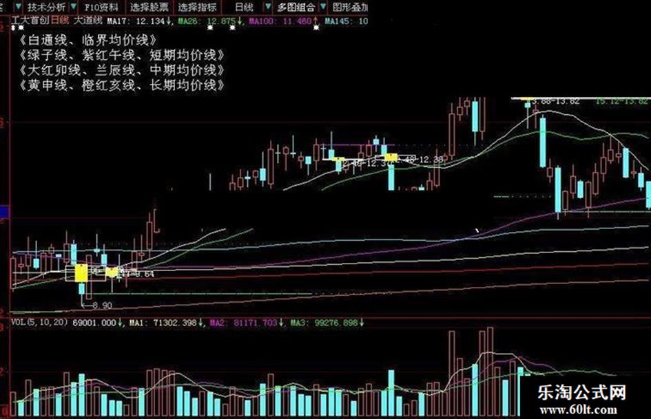 DRAWTEXTABS(5,30,'《绿子线、紫红午线、短期均价线》'),COLORWHITE,linethick3;