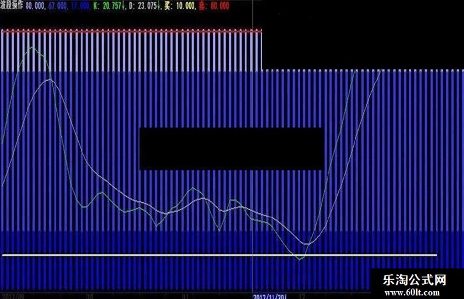 卖:IF(REF(KS13,1)<=0 AND CROSS(D,K),60,80),linethick2,colorred;